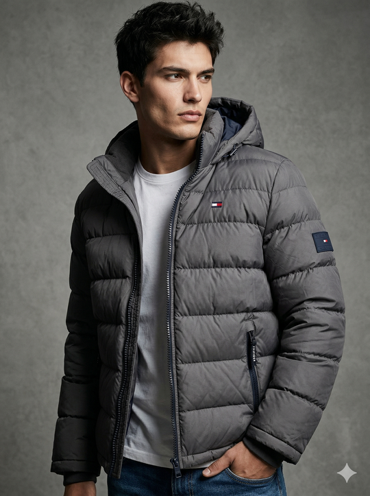 DKNY Men’s Mid-Weight Hooded Softshell Jacket – Quilted Water-Resistant Winter Coat with Storm Cuffs