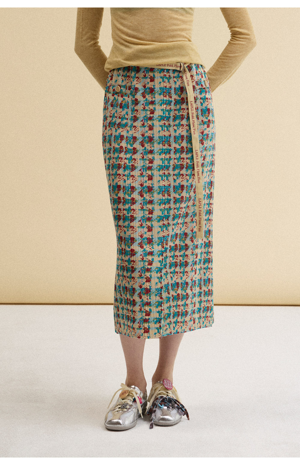 [SWOOP] LAPLI Tweed Pattern Belt Skirt_SWLASKTBDG